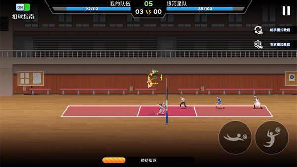 3、进入关卡后角色会自动接球,玩家之需要控制角色扣球和发球就可以。