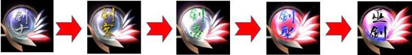 称号由低到高分五个段,分是士为阶别剑<剑客<剑豪<剑圣<巫剑。