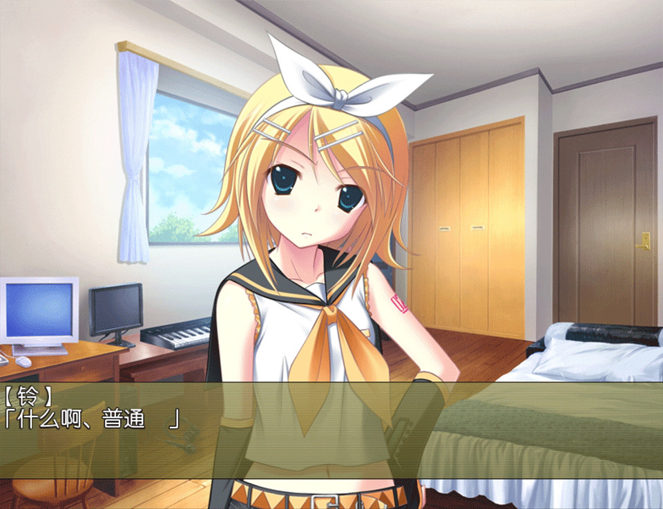 2、“镜音之歌”讲述的是你与金发少女——镜音之间的情感物语,温柔又略带忧伤。