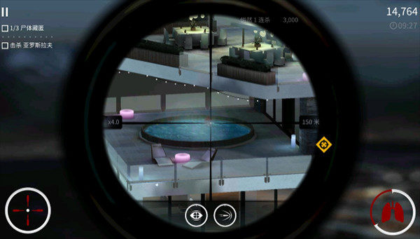 2、玩家将作为一名狙击手进行畅玩,轻按屏幕进入狙击视野;