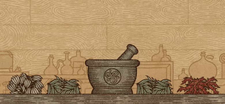 树叶、鲜花、浆果、根茎、水果、矿石和各种蘑菇都在你的研钵中准备好了。就像磨咖啡豆一样,把它们研磨得越细越好!