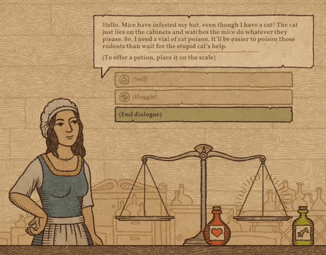 制作完成后的药剂会出售给不同顾客,玩家需要判断需求、价格与自身库存之间的关系,在接单和保留稀有材料之间找到更适合的发展节奏。