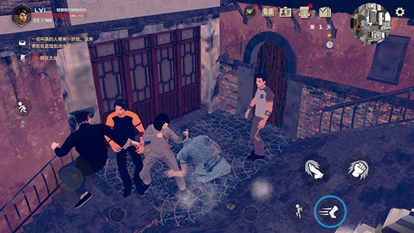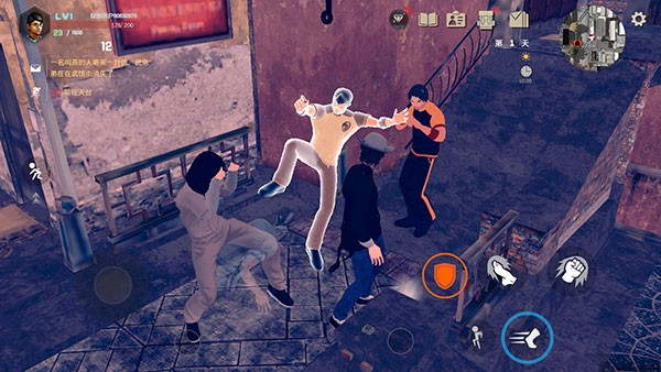 4、玩家需要通过虚拟轮盘和按钮来控制人物的打斗,不同的攻击方式,动作模组也不一样。