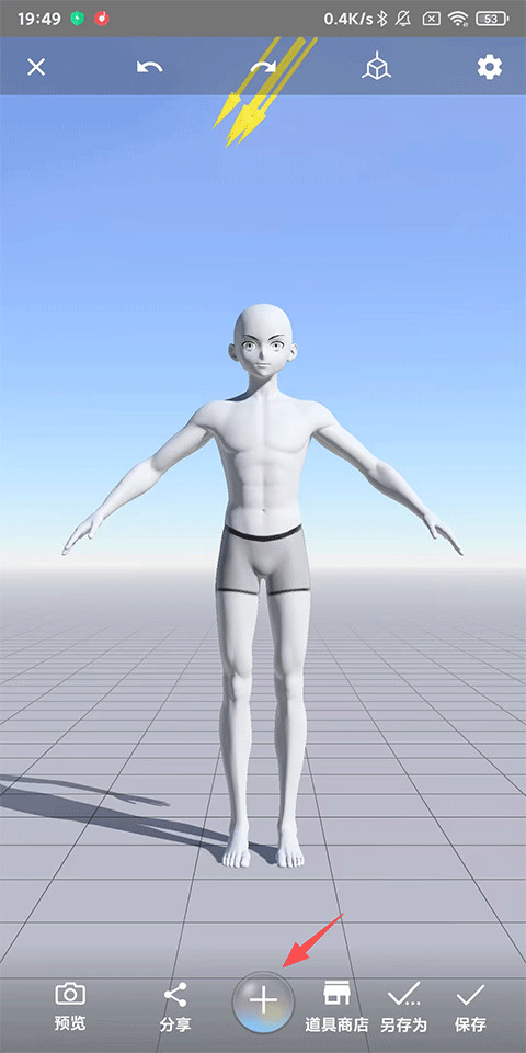 1、打开魔法人形师大师版游戏后,在主界面点击“+”按钮即可开始创建新的3D模型。