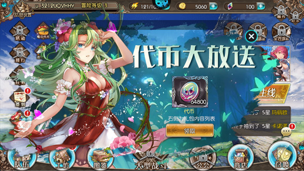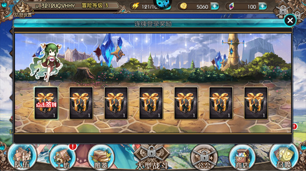 每日点击签到,7天/21天累计奖励包含大量金币、角色碎片和限定道具,首日奖励即可获得基础资源。