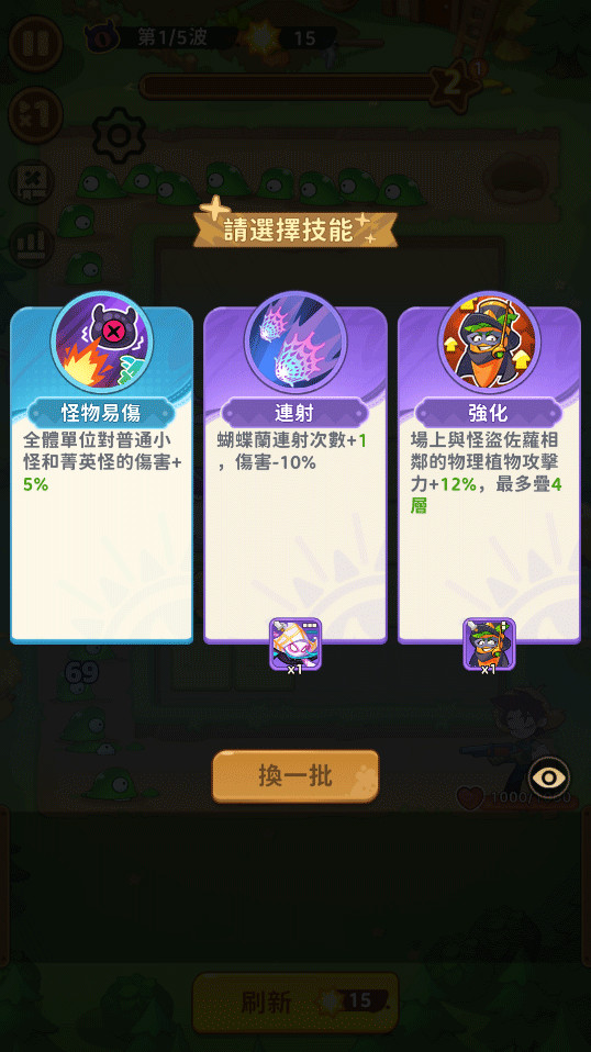 4、点击刷新获得更多的植物