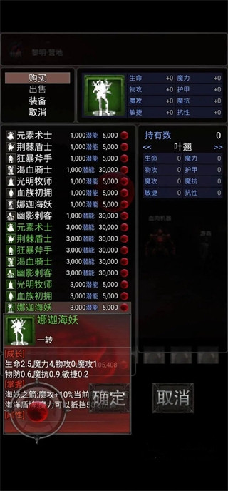 3.无限搭配:所有职业和血统更改为装备,当前已增加了五种职业(元素术士/荆棘盾士/狂暴斧手/渴血骑士/幽影刺客),玩家可以根据敌人的属性随时切换自己的职业,增加了游戏的策略性。