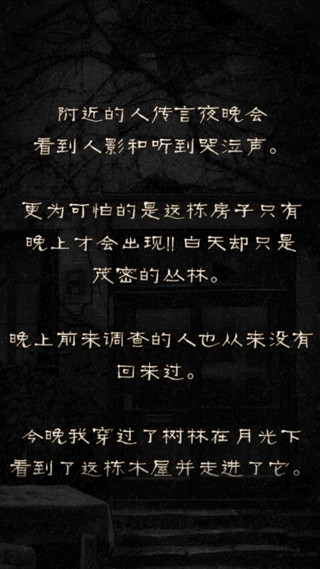 1、打开怨宅手机版,游戏开始前会有一段文字交代故事背景;