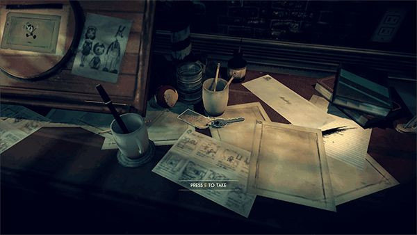 1、首先,班迪与黑暗复兴手机版里玩家一开始出现的位置是个工作室,这里要注意的是,桌上有把钥匙,记得拿好,靠近桌子后会出现提示按钮,这里因为没有改键,所以默认是“E”键;
