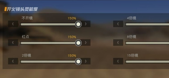 4、开火的镜头的灵敏度总共有6种,不开镜和红点调到最大,余下的可以按照自己的手感来调,开镜不容易瞄准敌人。