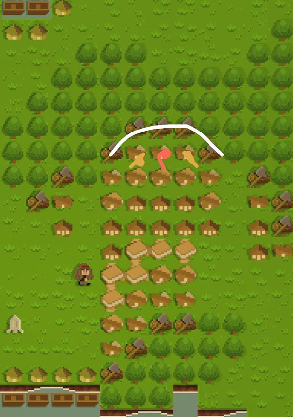 然后再浆果田中间建个房子,在房子前面建个农田(这些都是新手引导有的流程,我只提一下开场时的布局,记得用磁铁吸一下房子开启房子增加人口)。