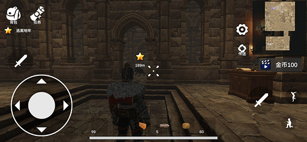 2、如该任务为逃离地牢,这时玩家可以根据前面的星星指引到目的地,也可以通过右上角地图查看目的点