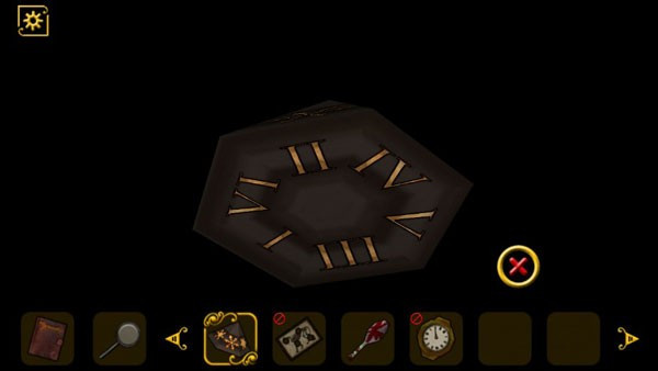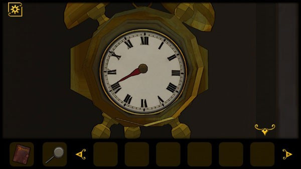 4、在留声机的背后获得房门钥匙,打开房门去往下一个房间,入眼即可看到一个钟表,绿色指针指向V