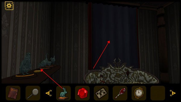 1、在镜子下方的抽屉里获得钥匙,用钥匙打开房门,点击沙发查看信件