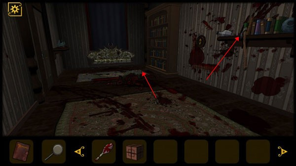 7、进入厨房,从桌子上获得勺子,然后进入带血的房间中