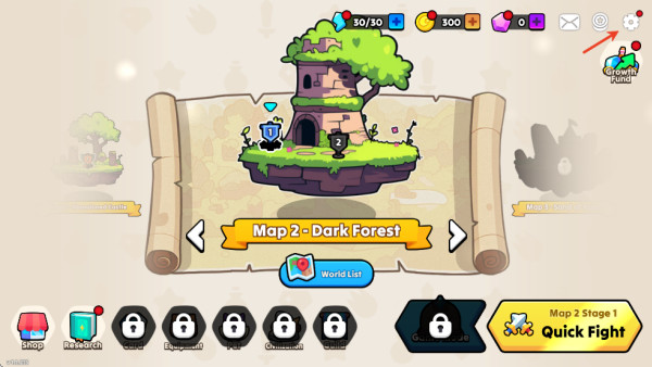 1、进入夜幕王国边境塔防游戏之后点击右上角的设置选项。