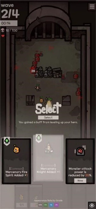 每局地下公会进攻游戏的地图布局、敌人配置与问号宝箱奖励完全随机,保证每次探险都是全新体验,重玩价值极高。击败敌人积累经验值升级时,从随机增益或新佣兵中三选一,构建独特战斗流派。