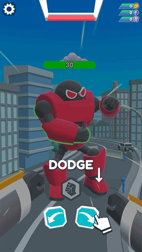 2、箭头图标用于阻挡敌人进攻,点击左箭头机器人抬左手,点击右箭头抬右手。
