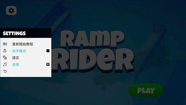 1、打开坡道滑板,进入游戏主界面,首先我们选择左上角的【齿轮】图标进入设置界面,
