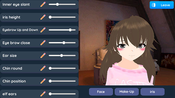 2、捏脸也很简单,调整的数据很全,可以改变五官的大小和位置;