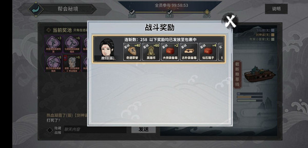 江湖+野球拳,高功高爆伤,主要是用剑魂主角+长枪术补定力,击杀敌人时全队会获得4级攻击强化:如图[图片]