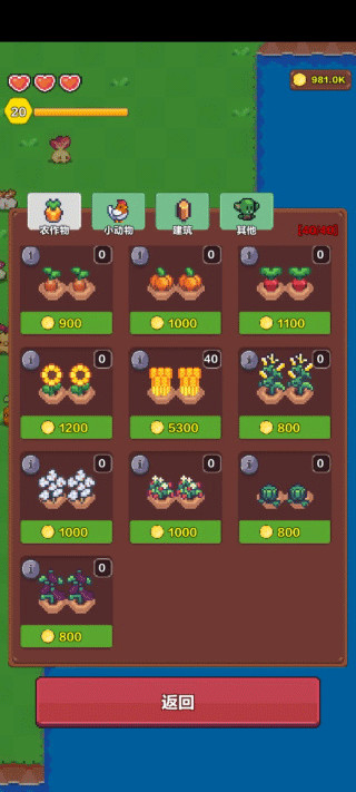 6、所有植物,田,家禽等价格都是递增的,前期合理分配金币。