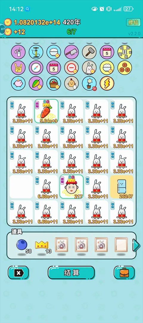 ----找到潜质萝卜,就清掉其他卡,只留兔子和几张自己想要的(共享老板,金手指,首富,锦鲤都挺不错)。刚开始可能钱来的慢,所以留几张能加收入的卡,把钱养起来。