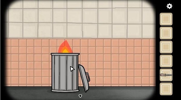 4、我们开局会自带一把火柴,我们用火柴点燃垃圾桶,然后垃圾桶会慢慢烧毁,露出一把小铲子。