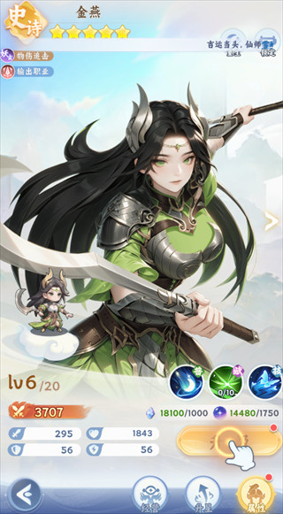 可对修士进行升级、升星、装备法宝、修炼秘术等操作,比如史诗角色「金燕」作为物伤追击型输出,需要重点培养攻击和暴击属性。