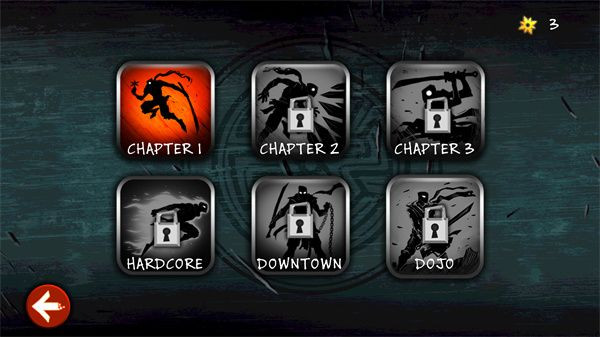 暗影之刃汉化版手游分为故事模式和挑战两类,故事模式就是通常的过关流程,有简单剧情。挑战模式则是在不同的地图上完成通关任务。故事模式则有7个关卡,每个关卡设置3个难度,完成上一关卡解锁下一个关卡,完成低级难度解锁高级难度;