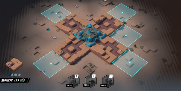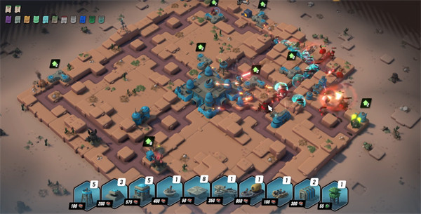 敌人会持续向领地推进,玩家需要消耗工具箱建造防御装置。工具箱主要通过消灭敌人获取,因此前期布塔位置很关键,火力覆盖不足时很容易被连续突破。