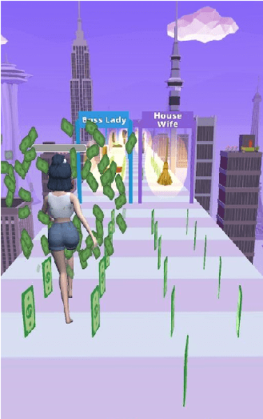 1. 这是一款休闲的跑酷游戏,你可以扮演女老板,自由地享受游戏,收集更多你喜欢的道具。