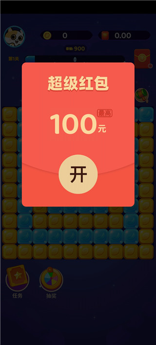 1、打开游戏,游戏会送一个超级红包,额度随机