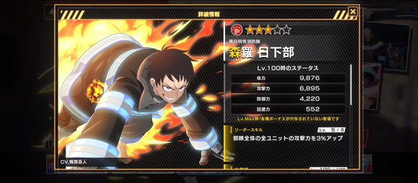 第8特别消防队二等消防官,第三世代能力者,自称‘骑士王’,不管是平时还是执行任务都不喜欢戴头盔。