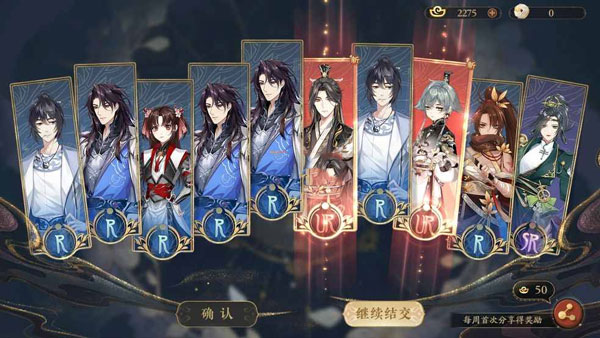 除此之外新手玩家在通过剧情任务之后,可以解锁新手特殊卡池,这个卡池当中玩家十连抽是必定可以拿到ssr名士左丘肃的,20抽可以在惊墨/未央/安如是/陵这四个ur名士当中随机获取一个,而且这几位名士都是比较不错的输出,可以让我们前期开荒更加简单。