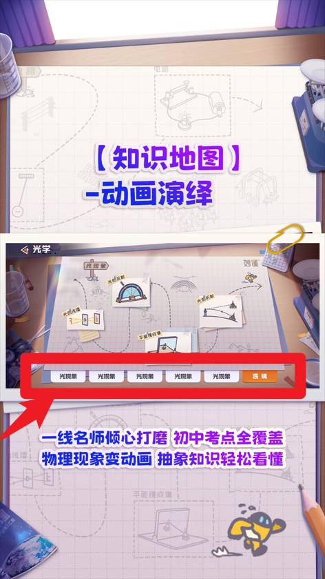 1、一线名师倾力打造动画知识地图,初中考点全覆盖,物理抽象现象变动态,轻松看懂原理。