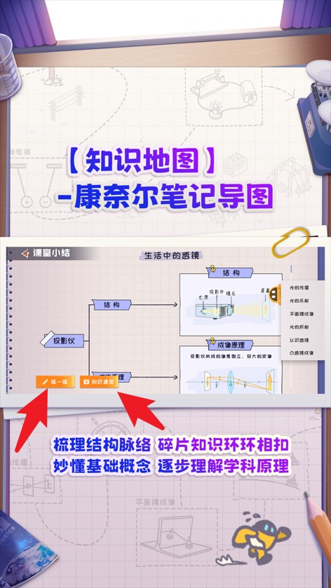 2、知识地图结合康奈尔笔记模式,条理清晰串联知识点,助力学生理解物理结构和基础概念。