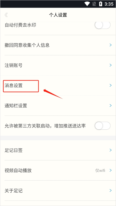 2、在“个人设置”页面选择“消息设置”选项。