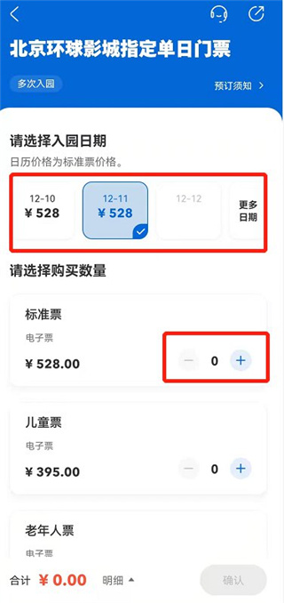 2、选择入园日期、门票种类及数量
