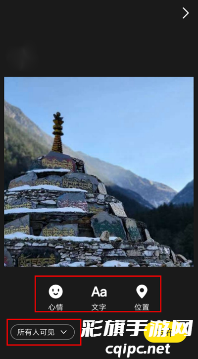 发布流程:拍照或从相册选择照片->在照片,上标注心情、文字、地理位置,选择可见范围->发布日记