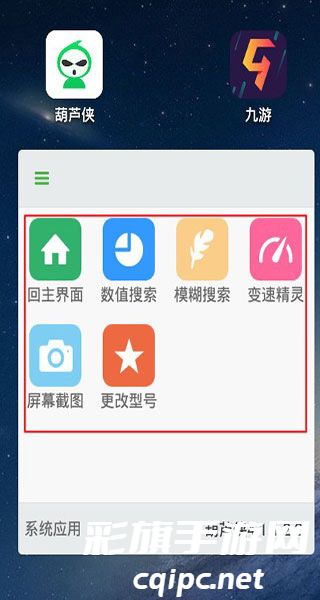 3、右划进入启动修改器,如下图在手机桌面会显示修改器图标;