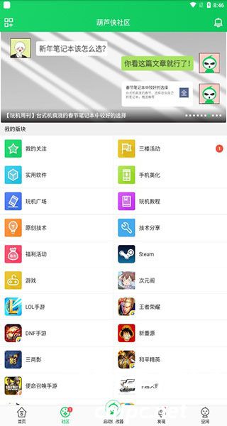 2、右划进入社区,这里进行了分类,用户能够更方便的进行选择;