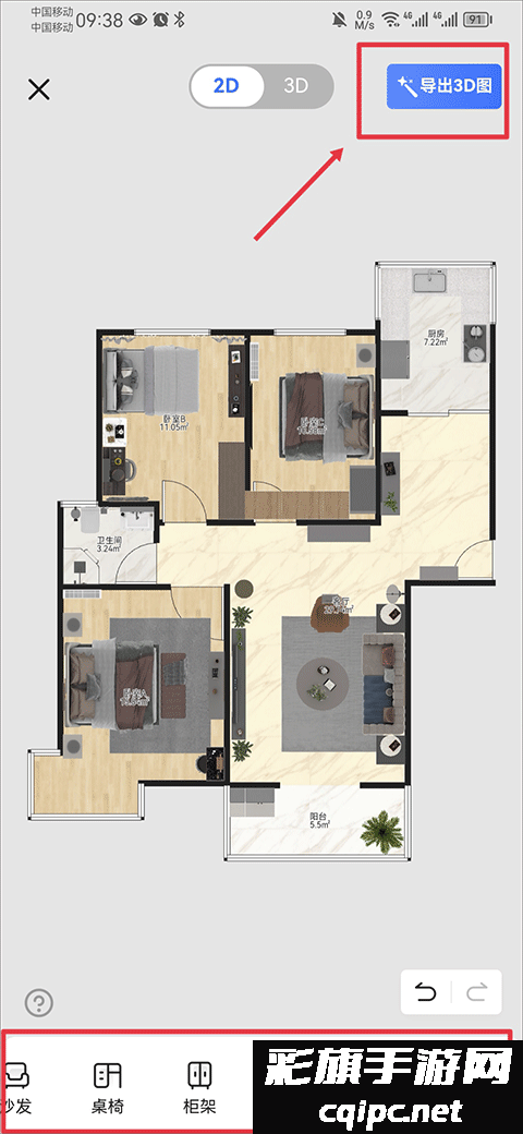 6、最后就可以使用下方菜单栏自定义自己的家啦,定制完成后点击导出3D图就可以啦