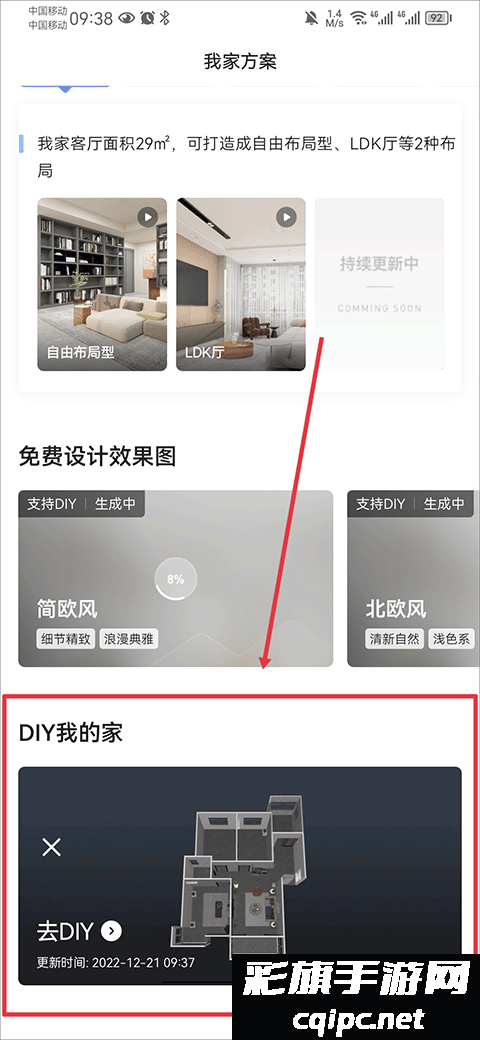 5、然后在我家方案中页面下滑到diy我的家