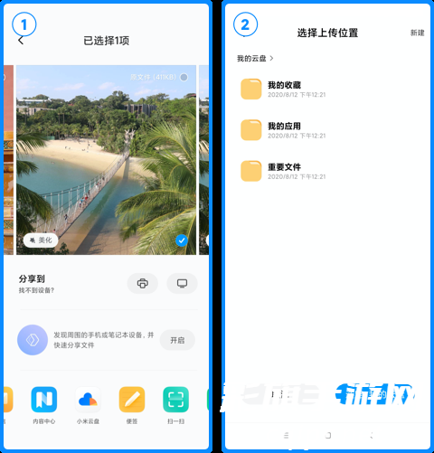 1、小米云盘内上传文件至云端