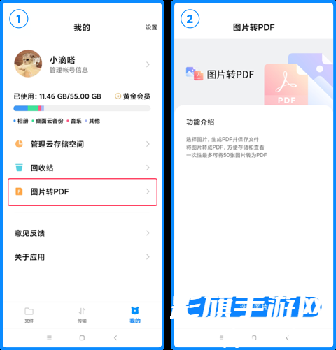 除了相册PPT图片自动转为PDF外,您也可以手动将图片转为PDF,在云盘“我的”>“图片转PDF”,选择手机相册的图片转为PDF即可。