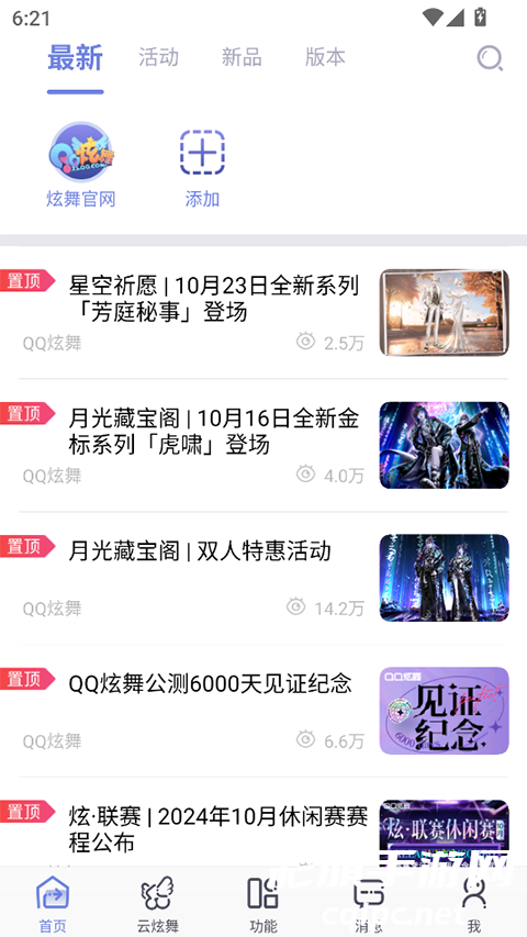 2、然后进入首页可以看到QQ炫舞的最新活动、新品以及版本修改信息等,选择自己感兴趣的内容,点击即可浏览;
