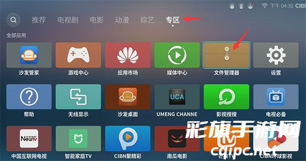 2、进入华为盒子”专区“选项,打开”文件管理器“;