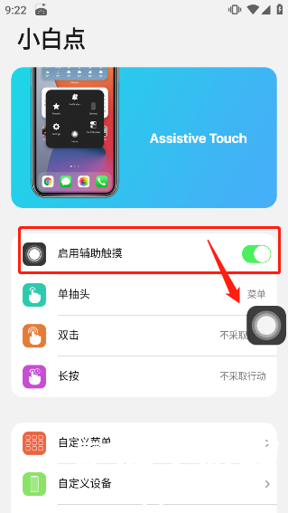 7、权限都打开后点击启动辅助触摸,即可启动“小白点”
