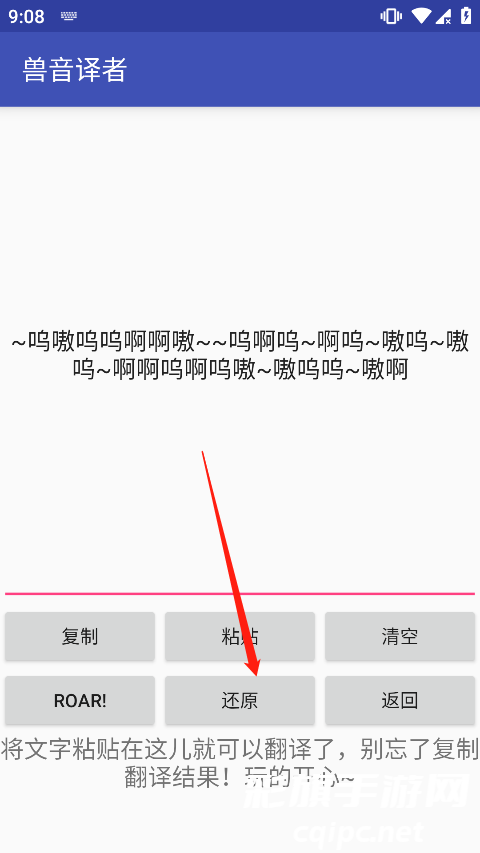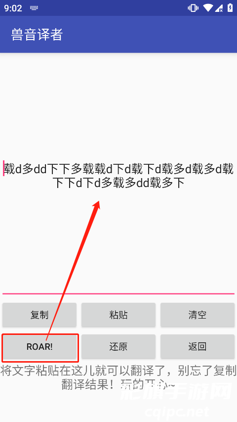 2、在文本栏中输入内容后,点击左下方“ROAR”就可以翻译了
